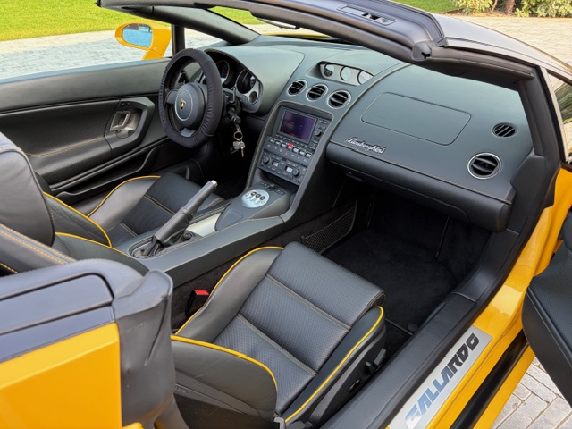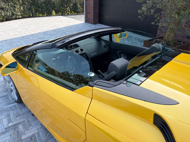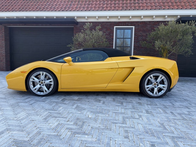 Een origineel Nederlands geleverde Lamborghini Spyder 5.0 V10. Op 01-07-2006 door Hessing afgeleverd aan de eerste eigenaar. In de kleur Giallo Midas Metallic met een zwart volledig lederen interieur met gele bies op beide voorstoelen. De auto is gedocumenteerd met de originele onderhoudsboekjes, en diverse facturen van onderhoud. Enkel en alleen door de officiele dealer uitgevoerd. In 2023 heeft de vorige eigenaar ervoor gekozen om ruim 75.000 euro te investeren om de Gallardo er fabriek nieuw bij te zetten. Werkelijk elk detail is in algehele nieuwstaat, werkzaamheden zijn uitgevoerd door Lamborghini Leusden. Een mooie kleurcombinatie, in nieuwstaat met de juiste motor en opties.
